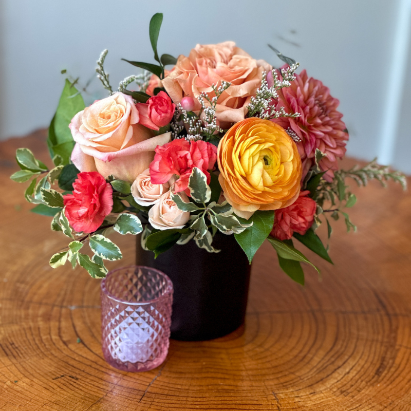 A petite design in a ceramic vase, perfect for adding a touch of floral beauty to bars, welcome tables, or small spaces throughout your celebration.