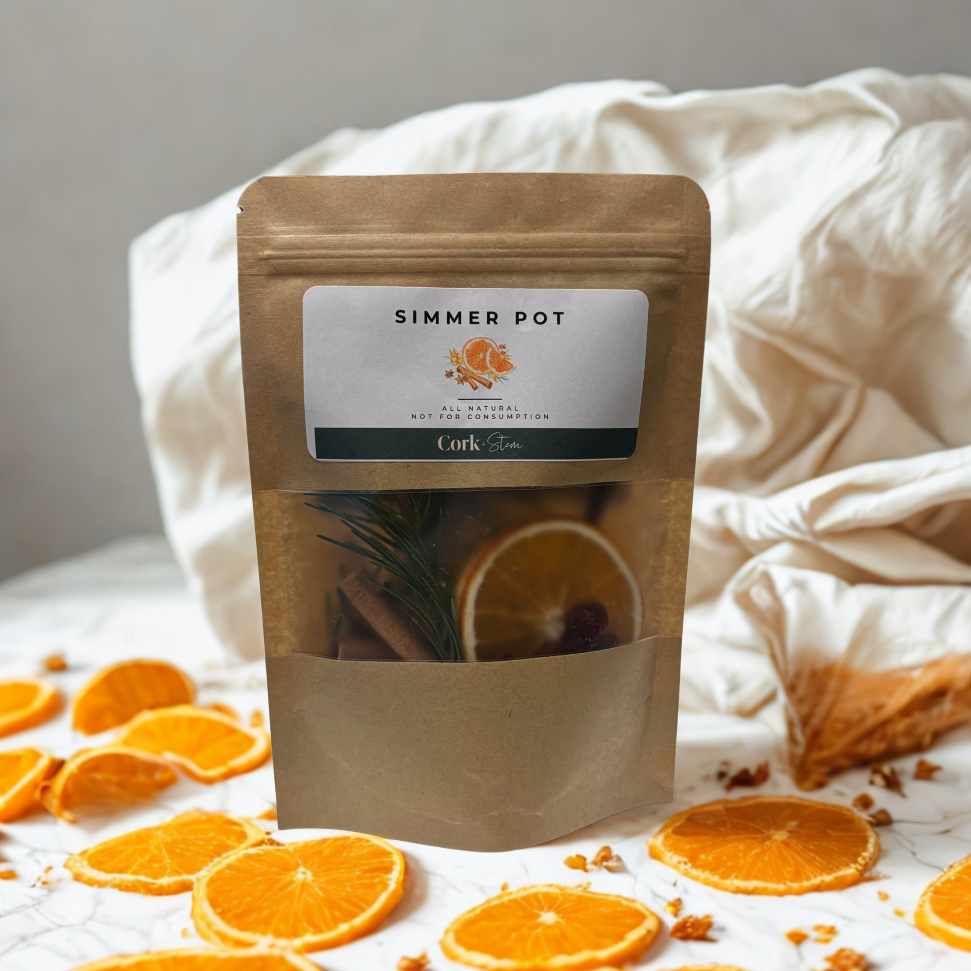 Fill your home with the comforting essence of the season with our Simmer Pot Blend — a natural, aromatic mix designed to gently infuse your space with cozy fragrance. Featuring a thoughtfully curated blend of dried citrus, herbs, and warming spices, this simmer pot creates an inviting atmosphere that feels both nostalgic and elevated.